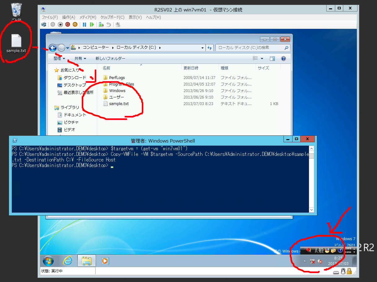 Hyper-V ホスト側から Copy-VMFile コマンドレットを実行すると、ネットワーク接続が無くてもファイルのコピーができました。