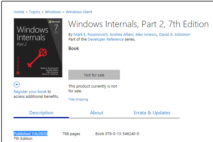 Windows Internals, Part 2, 7th Edition また延期